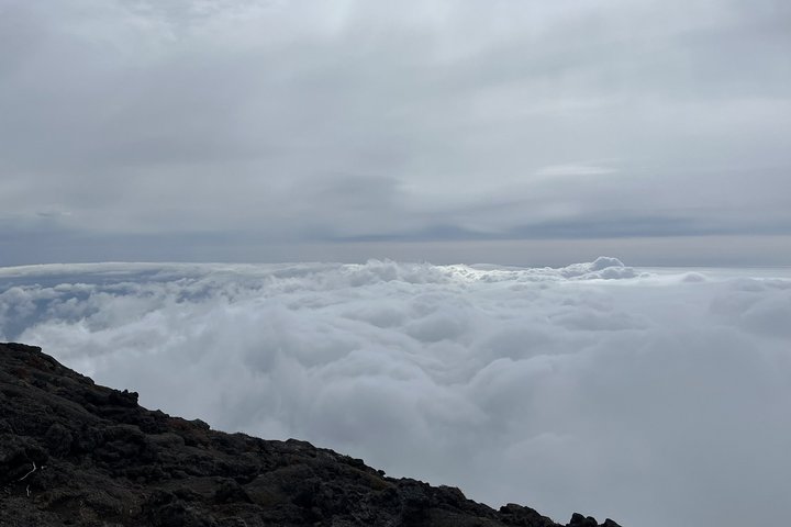Nach drei anstrengenden Stunden erreichen wir den Gipfel. Die Sicht bleibt eingeschränkt, die Insel bleibt verborgen – doch das Wolkenmeer macht jede Mühe wett. Den letzten Abschnitt zur Spitze des «Piquinho» lassen wir wegen des Wetters aus.