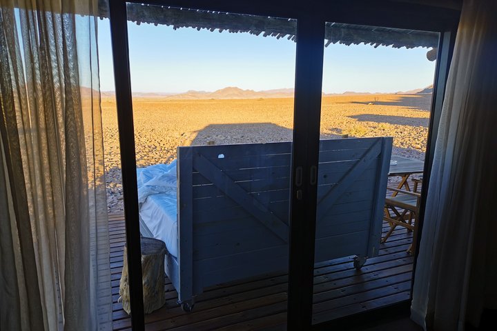 Bei unseren Unterkünften werde ich mehr als nur positiv überrascht: Jede Unterkunft hat ihren eigenen Charme und ihre eigenen Besonderheiten. Ein Bett zum Beispiel, das man unter den funkelnden Sternenhimmel schieben kann. Das ist ein echt einzigarties Erlebnis! Auch wenn mein Herz kurz rast, als mich nachts ein Schakal besucht ...