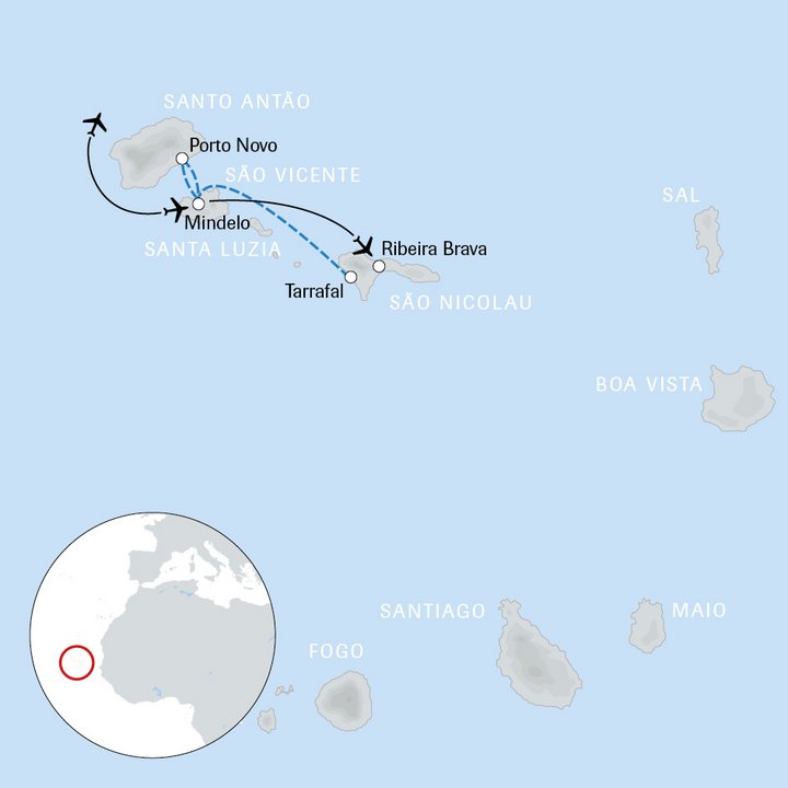 Reisetermine ganzjährig frei wählbar, Ankunft auf São Vicente immer montags, passend zum Fahrplan des Inlandfluges und den Fähren. Die vorgeschlagene Reise kann Ihren individuellen Wünschen angepasst werden.